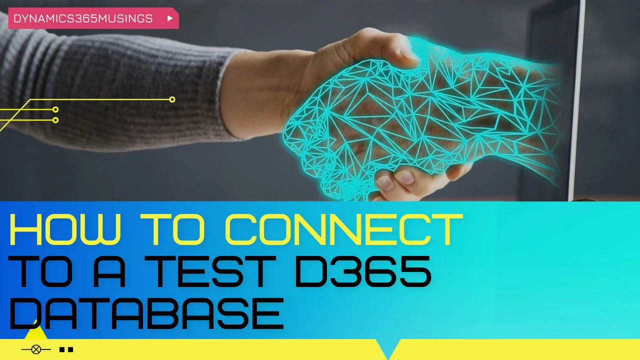 - You will need to know the sql connection information to be able to connect to a test d365 database from SQL Management Studio.