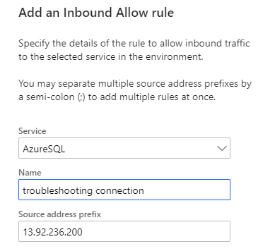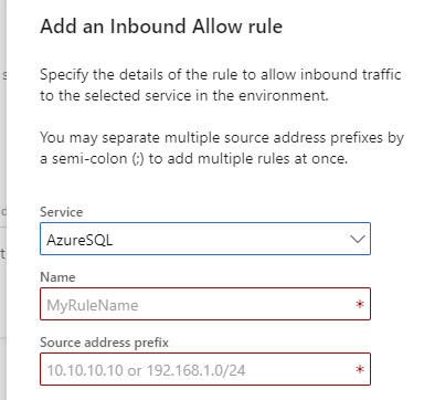 Set the ‘Source address prefix‘ to the public IP address of the computer running Microsoft SQL Server Management Studio.