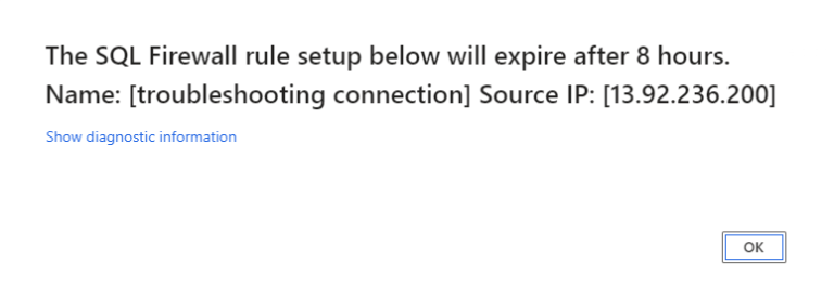This message means that even you have entered the SQL Server access information, there is still a firewall that is preventing you from accessing the database. Let’s look at how to correct this next.