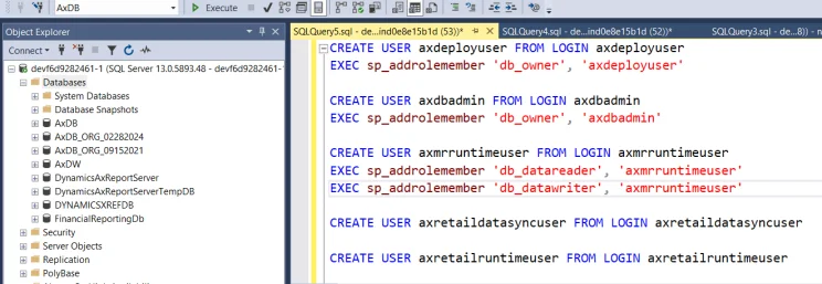 CREATE USER axdbadmin FROM LOGIN axdbadmin