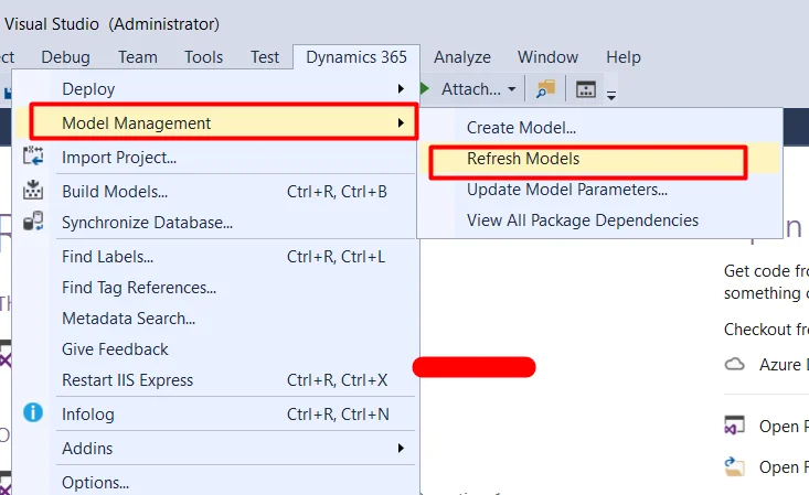 n. Go to Dynamics 365 > Model Management > Refresh Models